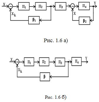 К приборам смешанного преобразования (рис. 1.6 а, б) относятся приборы, в структуру которых введена отрицательная обратная связь, охватывающая не все звенья прямого преобразования.