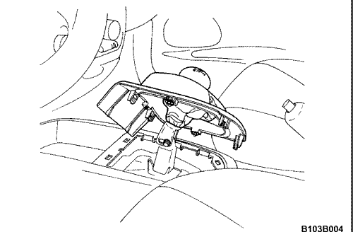 6. Снять защитный кожух со стороны консоли. 7. Вытянуть кожух вверх и открыть доступ к механизму рычага переключения передач. 8. Перевести рычаг переключения ближе к левой стороне нейтральной передачи. 9. Вставить штифт диаметром 5 мм (0,2 дюйма) в отверстия, чтобы выровнять рычаг переключения передач с его корпусом.