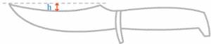 5. Ножи с вогнутым более чем на 10мм. обухом, при длине клинка более 180мм. 6. Ножи, на обухе которых, не далее 1/3 от острия, расположен заточенный крюк для вспарывания шкур. 7. Ножи, у которых величина прогиба обуха и верхней части рукояти ножа, имеющего форму дуги в виде "коромысла", вверх от условной прямой линии, соединяющей острие клинка и верхнюю оконечность рукояти, превышает 15 мм. 8. Ножи с клинком короче 90мм. 9. Ножи у которых лезвие и обух, или основное и выполненное на обухе сходятся под углом более 70 градусов. 10. Ножи толще 5-6мм. 11. Ножи лишенные заточенного лезвия (выведены спуски, но РК отсутствует). Ножи с рукоятью, не обеспечивающей надёжного удержания при уколе: