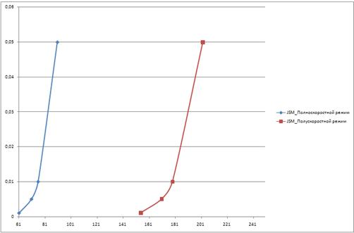 1. Для заданной суммарной полосы частот определено количество абонентов, которые могут быть обслужены в системах связи GSM(полноскоростной и полускоростной режим) и D-AMPS с разной нормой потерь.