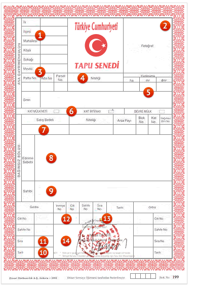 Перечень документов для оформления ВНЖ в Турции после получения права собственности (ТАПУ) и специального разрешения в Консульстве Турецкой Республики в стране проживания: · оригинал и ксерокопия вашего ИНН в Турции; · оригинал загранпаспорта и его ксерокопия с фотографией и открытой визой; · заявление для получения ВНЖ; · 4 цветных фото; · выписка из турецкого банка о наличии денег на вашем счету (кроме пенсионеров *). Необходимый минимум из расчета по 500 долларов США на каждый месяц проживания. Указанную сумму можно в любой момент снять со счета. Также можно открыть счет в любой другой валюте (например, в евро или турецкой лире). * Гражданам пенсионного возраста, имеющим подтверждающий документ, справку о наличии денежных средств для получения ВНЖ предоставлять не требуется. Это необходимо для подачи документов в Кадастровое управление. Необходимо для оформления права собственности (ТАПУ) на приобретаемый объект недвижимости. Процедура оформления занимает 3-5 рабочих дней. После получения разрешительных документов от государственных органов в Государственной Регистрационной Палате происходит выдача свидетельства о праве собственности – ТАПУ – в присутствии продавца, покупателя и лицензированного переводчика. К этому моменту должен быть произведен полный расчет между покупателем и продавцом, оплачены все налоги (единоразовый налог при получении Тапу 0,4% от кадастровой стоимости) и госпошлины в среднем 1000-1500 $. ТАПУ – это единственный документ, удостоверяющий право собственности на объект недвижимого имущества. Оно не может быть оспорено даже в судебном порядке.