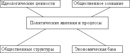 «Поле политики», т.е. то пространство, на которое она распространяется, имеет два типа измерения: территориальное и функциональное. Первое очерчено границами страны, второе — сферой действия принимаемых политических решений. При этом в «поле политики» входят практически все области общественной жизнедеятельности: экономика, идеология, культура и т.д. Политика взаимодействует с ними по принципу обратной связи, т.е. исходит из взаимовлияния политики и общественной среды.