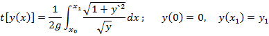 (t — время, затрачиваемое на перемещение по кривой у = у(х) из одной точки в другую, если скорость движения v = х, так как если