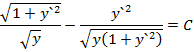 Подынтегральная функция зависит лишь от у и у' и, следовательно, первый интеграл уравнения Эйлера будет иметь вид После упрощений получаем Итак, искомая поверхность образуется вращением линии, уравнение которой в параметрической форме имеет вид