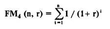 Дисконтирующий множитель FM4 (n, r) характеризует приведенную стоимость срочного аннуитета постнумерандо в одну денежную единицу продолжительностью n периодов: