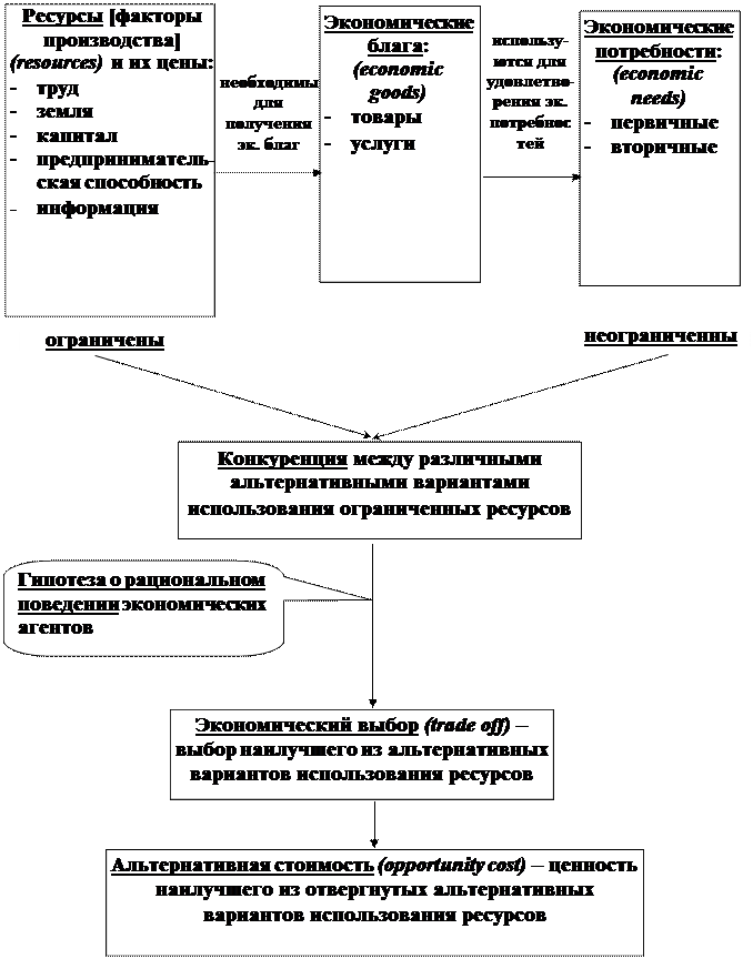 КАПИТАЛ – · физический капитал - основной – здания, сооружения, оборудование… (используемый более одного производственного цикла); - оборотный – сырье, расходные материалы, электроэнергия… (используемый в течение одного производственного цикла); · человеческий капитал - врожденные способности и таланты; - приобретенные навыки, уровень образования, квалификация… Доход от предоставления капитала – ПРОЦЕНТ ПРЕДПРИНИМАТЕЛЬСКАЯ СПОСОБНОСТЬ – способность комбинировать остальные виды ресурсов Ограниченность ресурсов и неограниченность потребностей означает невозможность одновременного и полного удовлетворения всех потребностей всех людей. Рациональное поведение экономических агентов предполагает стремление к достижению наилучшего результата при данных затратах ресурсов (или достижение заданного результата с наименьшими затратами).