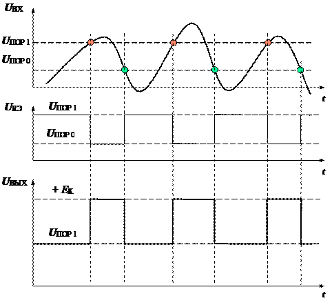 ТШ широко применяется для фиксации превышения напряжением U ВХ установлено уровня U ПОР1 и получения прямоугольных импульсов из медленно изменяющегося U ВХ.