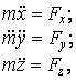 3) Две основные задачи динамики. В динамике решаются две основных задачи: 1) по заданному движению точки или системы определить силы, производящие это движение. 2) по заданным силам, действующим на точку или систему, определить движение этих объектов. Первая основная задача динамики Пусть движение точки массой m задано координатным способом, т.е. заданы x = f1(t); y = f2(t); z = f3(t) Дифференцируя дважды по t и подставляя значения Модуль и направляющие косинусы равнодействующей найдем по формулам: