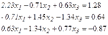 Рис. 2.4. Фрагмент рабочего листа с решением системы уравнения С помощью ключевых слов Given и Find можно выполнять решение уравнений и систем уравнений линейного и нелинейного вида. MathCad позволяет решать уравнения и в матричном виде. Рассмотрим систему n линейных алгебраических уравнений относительно n неизвестных х 1, х 2, …, хn: