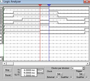 Рис. 4. Показания логического анализатора при при частоте дискретизации 1 кГц