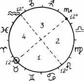 На рис.21.2 видно, что зона от 12° Тельца до 12° Льва соответствует первой четверти Луны, от 12° Льва до 12° Скорпиона — второй, от 12° Скорпиона до 12° Водолея — третьей и от 12° Водолея до 12° Тельца — четвертой четверти Луны. Рис. 21.2. Фазы Луны на зодиакальном круге Итак, что мы можем сказать о человеке, зная скорость Луны и се фазу в его натальной карте? Перейдем собственно к интерпретации. У насесть знак, скорость и фаза. Задача Луны — это организация нашего поведения. Солнце задает основные побуждения человека, его мировосприятие, тип активности, темперамент, в общем, неизменные качества, но энергия, которую дает Солнце, организуется, распределяется в зависимости от того, что происходит вокруг, или, как говорят сейчас психологи и социологи, в зависимости от контекста — того непосредственного окружения, в котором происходит действие. Например, каждое слово обретает свой конкретный смысл, дополнительные нюансы и оттенки, а иногда и новое значение в зависимости от фразы, в которой оно стоит. И фраза сама по себе становится полнозначной именно в последовательности фраз или в живой ситуации. Слово "умница" может оказаться как насмешкой, так и похвалой. Все знаки так различны, поскольку их значение зависит от взаимодействия человека с окружением, от событий, происходящих в данный момент, от настроения, которое висит в воздухе. Так темперамент человека, его импульс, стремление, тип активности обретают форму именно в контексте. Например, Лев приглашен на вечер, куда пришел именитый гость. Яркий Лев привык быть в центре внимания, и ему тоже хочется как-то проявить себя. Если у него огненная Луна в натальной карте, он может затеять спор с гостем, на которого все пришли посмотреть, или задавать вопросы, в общем, влезть тоже в центр, встать рядом. А может заскучать и уйти, сесть и заниматься чем-нибудь своим, поскольку все неинтересно, товарищи его знают и ничего нового здесь не будет. Если Луна в Скорпионе, она усилит самолюбие и обидчивость, и он будет сидеть в стороне и молча ждать, когда на него обратят внимание, начнут его развлекать. В обоих случаях Солнце во Льве, а поведение разное— почему? Именно Луна определяет, как человек реагирует на контекст, насколько он восприимчив, как выражает в поведении свои мысли и чувства. Луна может быть тормозом и, наоборот, усилителем. Она определяет, будет ли человек учитывать настроение окружающих в своих действиях (это необходимая часть организации своего поведения) или будет вести себя так, как будто вокруг него безвоздушное пространство, безлюдный мир. Луна отвечает и за то, как человек принимает решение в конкретной ситуации. Скорость принятия решения, активность, готовность быть активным, действовать, — все это связано с Луной. Человек строит свою жизнь, превращая солнечный импульс, солнечную силу в форму, в действие — астрологически это зависит от соотношения Солнца и Луны. В карте рожденного об этом говорят, в первую очередь, три показателя — знак, скорость, фаза. С Луной связаны, кроме одной из сторон характера человека, личности, еще и события. Фаза Луны в натальной карте определяет структуру жизни человека и события, зависящие от этой структуры. Луна характеризует пространства, к которым тяготеет человек, где он чувствует себя естественнее всего, где он свободно и легко расходует энергию, пространства 