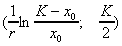 Ордината представляет собой половину максимальной численности, а абсцисса зависит как от емкости популяции K, так и от константы собственной скорости роста r - чем выше генетические возможности популяции, тем скорее наступает перегиб на кривой численности.