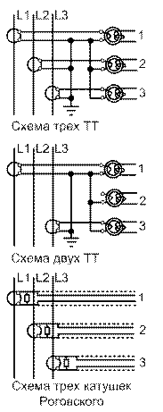Рис. 2.13. Структура измерительных Рис. 2.14. Схемы измерения органов цифровой защиты ЦП=П фазных токов