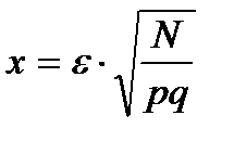 2. Нахождение максимального отклонения относительной частоты отказов от заданной вероятности (e) при известных b и N. Сначала по таблице интеграла вероятностей находят х как в прямой задаче, а затем находят e по формуле: