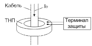 Моделирование однофазных замыканий на землю Известно, что при возникновении ОЗЗ в распределительной сети, по кабельному присоединению шкафа КРУ протекает ток нулевой последовательности Io (рис.3.6.8). Этот ток является первичным током трансформатора тока нулевой последовательности (ТНП). Ток с вторичной обмотки ТНП поступает на вход терминала защиты, который дает сигнал на отключение присоединения при превышении током Io уставки защиты ОЗЗ.