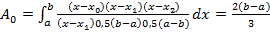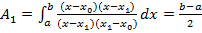 Формулу (5) називають узагальненою формулою середніх прямокутників. Аналогічно дістанемо узагальнені формули лівих і правих прямокутників. Квадратурна формула трапеції. Розглянемо випадок квадратурної формули Ньютона-Котеса, яка має два вузли x 0= a і xn = b (n =1). Коефіцієнти Ak (k =0,1) знаходимо з формули (3)