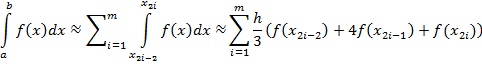 У випадку додатної функції f(x) формула (8), як бачимо, зводиться до того, що інтеграл Узагальнена формула Сімпсона. Якщо відрізок [ а; b ] великий, то його ділять на парну кількість 2 m рівних частин: [ x 0; x 1], [ x 1; x 2],..., [ x 2 m -1; x 2 m ] завдовжки