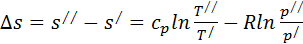 где cp – удельная теплоемкость газа при постоянном давлении; Т/, р/ - температура и давление газа в начале процесса (при начальном термодинамическом состоянии); Т//, р// - температура и давление газа в конце процесса (при конечном термодинамическом состоянии).