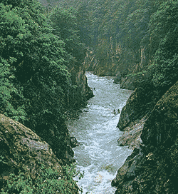 Реки со слабо разработанными каньонообразнымн ущельями менее доступны для плавания. Малая разработанность ущелья говорит о твердости пород или о недостаточной мощности потока: и в том и в другом случаях в слабо разработанном ущелье можно ожидать труднопроходимые или непроходимые препятствия в виде водопадов или водоскатов с косыми валами, вертикальное перемешивание воды, водовороты. В слабо разработанном ущелье трудно организовать разведку и страховку. В качестве примеров непроходимых, слабо разработанных ущелий можно назвать Сюковское гранитное ущелье реки Белой на Западном Кавказе или Таргимское ущелье реки Асса на Восточном Кавказе: первое слабо разработано из-за очень твердой породы (гранит), второе - из-за маловодности реки.