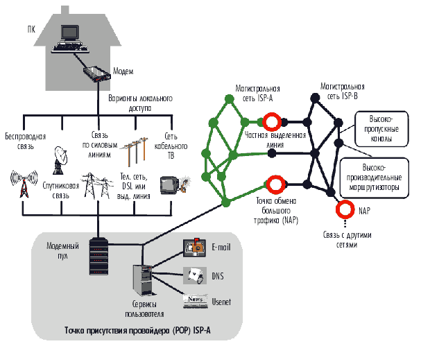 Рис. 3. Интернет — это десятки тысяч ISP-провайдеров, сотни тысяч сетей и миллионы компьютеров.