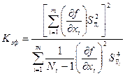 Распределение результата косвенных измерений будет нормальным, если нормальны распределения результатов прямых измерений, а их среднестатистические получены обработкой достаточно большого числа результатов. Если же объемы рядов прямых измерений недостаточно велики, можно воспользоваться распределением Стьюдента с некоторым "Эффективным" числом степеней свободы, которые при независимости погрешности подсчитываются по формуле: