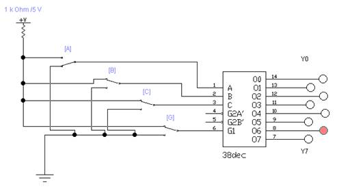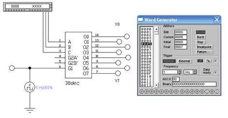 Рис. 2. Схема для исследования дешифратора 3х8