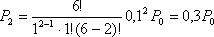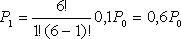 Пример 1. Оптовый склад строительных материалов обслуживает шесть предприятий-потребителей материалов. Каждый из потребителей направляет на склад автомашину за материалами в среднем один раз в смену (продолжительность смены 8 ч). На складе имеется один автопогрузчик, который используется только для погрузки материалов на прибывающие автомашины. Прибывшая на склад автомашина становится в очередь, если автопогрузчик занят погрузкой другой автомашины. Обработка статистических данных о продолжительности погрузки одной автомашины и проверка соответствующей гипотезы показали, что продолжительность погрузки одной автомашины подчиняется показательному закону распределения и составляет в среднем 48 мин (0,1 смены). Статистическое исследование потока автомашин показало, что число автомашин, поступающих на склад в единицу времени, подчиняется пуассоновскому закону распределения. Требуется провести расчет характеристик функционирования приведенной производственной системы как СМО. Решение. Рассчитаем основные параметры системы для условий задачи. Вероятность того, что все обслуживающие аппараты свободны (на складе нет автомашин):