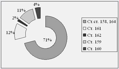 Рисунок 3. Структура преступлений против собственности, зарегистрированных в России в 2010 году