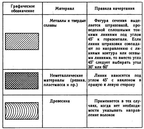 Графические обозначения некоторых материалов на чертежах
