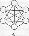 Рисунок 3.1.1 Структуры: а — линейная; б — кольцевая; в — сотовая; г — многосвязная; д — звездная; е— графовая Линейное руководство строится на основе производственной структуры предприятия. Линейная структура - исторически самый простой вид организационной структуры предприятия. Такая организационная структура представляет собой древовидную иерархическую структуру, т.е. структуру, в которой любой элемент нижележащего уровня подчинен только одному элементу вышестоящего, что позволяет реализовать в системе управления только отношения «руководство - подчинение. В линейной структуре руководитель выполняет все функции по управлению подразделениями - от управления собственно производственным процессом до управления всеми видами обеспечивающей деятельности (материально-техническое снабжение, распределение финансов, учет труда и заработной платы сотрудников, вплоть до подбора кадров). Поэтому он должен обладать разнообразными знаниями и опытом управления, а структура создает реальные условия для единоначалия, обеспечивает единство распорядительства в системе управления. Такие свойства линейной структуры ориентируют руководителей в основном на решение оперативных задач. Линейное управление строится на основе производственной структуры предприятия и используется для управления организацией в целом (предприятие - цех - участок), а также его подразделениями (начальник цеха - начальник участка - мастер). Отношение «руководство - подчинение» строится на основе линейной структуры и в подразделениях функционального управления Функциональные подразделения обеспечивают единую политику и централизацию управления по основным укрупненным функциям организации производственного процесса (техническая и технологическая подготовка производства, материально-техническое обеспечение процесса производства, финансовое, кадровое и другие виды обеспечения предприятия). В то же время отношения внутри функциональных подразделений также строятся по линейному принципу (заместитель директора по соответствующему виду деятельности - отдел - бюро). В линейно-функциональной структуре принято такое разделение труда, при котором линейные звенья управления наделены принципами единоначалия и выполняют функции распорядительства, а функциональные - оказывают помощь линейным, но свое непосредственное воздействие на нижележащие звенья осуществляют только после согласования технической, экономической и т. п. видов политики и планов ремонта помещений, техники, распределения ресурсов (финансовых, кадровых, ЭВМ и т. д.) на Директорате (научно-техническом совете) предприятия (или организации). Кольцевая структура (рис. 1,б) отличается замкнутостью, любые два элемента обладают двумя направлениями связи. Это повышает скорость обмена информацией, делает структуру более живучей. Сотовая структура (рис. 1,в) характеризуется наличием ре-чсрвных связей, что повышает надежность (живучесть) функционирования структуры, но приводит к повышению ее стоимости. Многосвязная структура (рис. 1,г) имеет структуру полного графа. За счет наличия кратчайших путей надежность ее функционирования максимальная, эффективность функционирования высокая, однако стоимость тоже максимальная. Звездная структура (рис. 1,д) имеет центральный узел, который выполняет роль