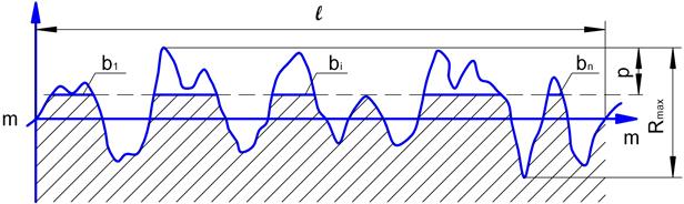 Рис. 17. Среднее арифметическое отклонение профиля R 2. Высота неровностей профиля по десяти точкам Rz, мкм (рис.18)– сумма средних абсолютных значений высот пяти наибольших выступов и глубин пяти наибольших впадин профиля в пределах базовой длины