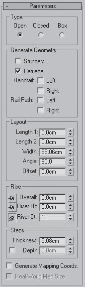 Рис. 9.7. Свиток Parameters (Параметры) настроек лестницы