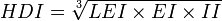 где Индекс развития человеческого потенциала (ИРЧП) определённой страны зависит от трёх следующих показателей: 1. Индекс ожидаемой продолжительности жизни (LEI) = 2. Индекс образования (EI) =