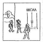Карта 5. На фоне школы группа детей, идущих по направлению к ней. Один мальчик (девочка) с ранцем за спиной идет в противоположную сторону (отрицание мотива учебы). Рис. 5 (а, б)