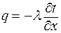 Для определения количества теплоты, проходящего через единицу поверхности стенки в единицу времени в направлении оси х, воспользуемся законом Фурье
