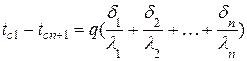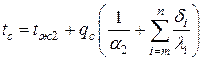 Для многослойной стенки: на внешних поверхностях tc(n+1) = tж2+ на поверхности между слоями