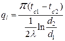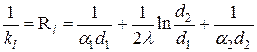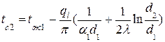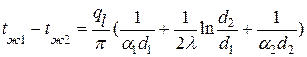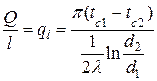 Если тепловой поток через цилиндрическую стенку отнести к внутренней или наружной поверхности стенки, то получим плотность теплового потока, Вт/м2, отнесенную к единице соответствующей поверхности трубы
