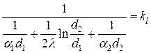 где Если толщина стенки цилиндра мала по сравнению с диаметром, т.е. Теплопередача через многослойную стенку. При теплопередаче через многослойную цилиндрическую стенку система равенств должна быть заменена системой, учитывающей сопротивление теплопроводности всех слоев