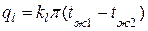 Тепловой поток, отнесенный к единице длины трубы, называется линейной плотностью теплового потока. Плотности теплового потока q1 и q2 при передаче теплоты через трубы неодинаковы, причем всегда q1 > q2. Связь между линейной плотностью теплового потока и внутренними и наружными поверхностными плотностями теплового потока ql=πd2q2=πd1q1. Граничные условия третьего рода (теплопередача). Теплопередача однослойной стенки. Рассмотрим однородную цилиндрическую стенку с постоянным коэффициентом теплопроводности