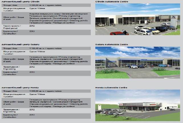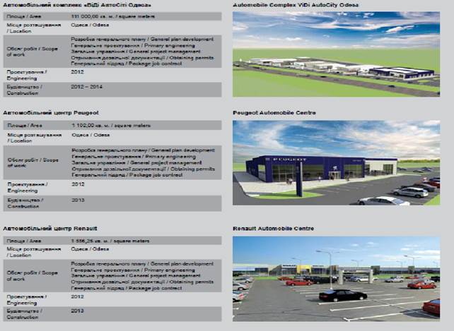 До складу групи входять дочірні компанії ТОВ «ВіДі-Інжиніринг», ТОВ «ВіДі-Будівництво» та ТОВ «ВіДі-Нерухомість». До основних функцій «ВіДі Девелопмент Менеджмент Груп» входять розробка концепцій об’єктів, проектування, будівництво та управління комерційною нерухомістю. До складу «ВіДі Груп» входять компанії, що надають повний спектр послуг у сфері будівництва, проектування та управління нерухомістю та спеціалізуються на генеральному проектуванні та генеральному підряді будівництва автомобільних центрів, логістичних комплексів та об’єктів придорожньої інфраструктури. Основною метою діяльності підприємств є забезпечення замовника якісними послугами з проектування та будівництва високотехнологічних та зручних об’єктів нерухомості комерційного та виробничого призначення. Компанія виступає як генеральний підрядник і генеральний проектувальник. Генпідрядник фінансується Замовником по даному об'єкту, а також веде підрядну діяльність на інших об'єктах і фінансується з інших джерел. «ВіДі-Інжиніринг» та «ВіДі-Будівництво» працюють на ринку з 2007 року. Послуги, що надаються «ВіДі-Інжиніринг» та «ВіДі-Будівництво»: Генеральне проектування: ■■ розробка концепцій (ескізних проектів) автомобільних комплексів; ■■ розробка робочих проектів, автомобільних комплексів, що є основним документом для проведення тендерів та виконання будівельних робіт; ■■ супровід розробки робочих проектів підключення до зовнішніх інженерних мереж електро, газо, тепло, водопостачання господарсько–побутового, каналізування та водовідведення; ■■ супровід розробки робочих проектів організації заїздів-виїздів та під’їзних шляхів до об’єкту. Генеральний підряд: ■■ організація виконання будівельних робіт; ■■ виконання земельних робіт; ■■ виконання робіт з влаштування фундаментів, монолітних залізобетонних, металевих конструкцій, покрівель, стінових та огороджуючих конструкцій. Виконання робіт з влаштування інженерних мереж будівель - електричні мережі та освітлення, слабкострумні мережі (телефонія,комп’ютерна мережа, відеоспостереження, система контролю доступу, системи управління інженерним обладнанням): ■■ водопровід, каналізування, водовідведення; ■■ опалення, вентиляція та кондиціонування; ■■ газопостачання та котельні. Оздоблювальні роботи: ■■ підлога: промислова, полімерна, плитка, ламінат, ковролін та ін.; ■■ стіни: ГКЛ, офісні скляні перегородки, мобільні перегородки, штукатурні, малярні роботи та ін.; ■■ стеля: підвісні, ГКЛ, натяжні, декоративні та ін. Додаткові послуги Допомога замовнику в виборі та придбанні земельної ділянки: ■■ пошук земельних ділянок для потреб бізнесу; ■■ супровід угоди купівлі – продажу; ■■ планування найбільш ефективного розвитку території. Професійний консалтинг в сфері будівництва: ■■ супровід отримання дозвільної документації для будівництвавідповідно до ЗУ «Про регулювання містобудівної діяльності»№3038-VI від 17.02.2011р.; ■■ розробка календарних графіків та координація всіх учасників з метою дотримання термінів будівництва; ■■ розрахунок бюджету (кошторису) будівництва та його відстеження з метою контролю запланованих витрат; ■■ супровід процедури передачі об’єкту до експлуатації. Побудовані об’єкти: