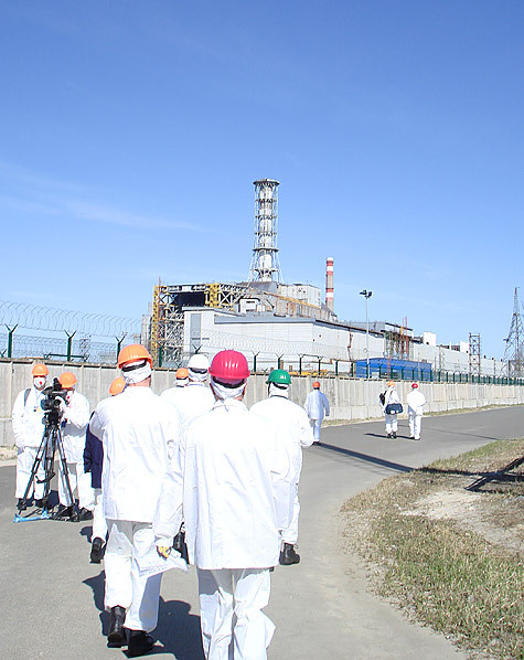 Знак радіації, чорний Трилисник на жовтому тлі, сприймається тут як звичайний дорожній покажчик. Проходимо кілька дверей з кодовими замками. Супроводжуюча нас Ганна Олег викликає на зв’язок начальника варти, називає своє прізвище, посаду, коди доступу. Тільки через хвилину звучить зумер. Об’єкт охороняється, як державний кордон. Ми просочується в БЩУ-3, звідки здійснюється повний контроль над третім енергоблоком. На величезному полукруглому щиті – численні прилади контролю, автоматики, дистанційного керування, попереджувальної та аварійної сигналізації. - Третій блок зараз порожній, паливо вивантажили рік тому, – каже начальник зміни станції Андрій Гусєв. – Але реактивні речовини ще на місці. Так що працюють і система охолодження блоків, і вентиляція. У третьому залі зараз ріжуть старі пенали, готують обладнання для поховання. Також належить витягти і захоронити відпрацьоване ядерне паливо в басейнах витримки першої та другої реакторних установок. У торці коридора – пам’ятник машиністу Валерію Ходемчуку. У 86-му, у момент аварії, він стежив за поведінкою насосів в режимі виведення ротора генератора. Його тіло так і не знайшли. Вибухнув четвертий реактор став його могилою. Захоплений журналістами побутовий дозиметр безперервно гуде. На екрані – 813 мкР / год, при природному фоні – 13-15. Супроводжуючі нас співробітники, що знають різницю між “небезпечним рівнем радіації” і “безпечної радіоактивністю”, залишаються байдужими. На виході з оперативного приміщення вкотре, який вже за рахунком раз проходимо через “рамки” – систему радіаційного контролю. Секунди здаються хвилинами … Нарешті, блимає зелений вогник. Виходимо на свободу не тільки з чистою совістю, але і з чистим тілом. Для того щоб відправитися в саме пекло – до саркофагу, зведеного над зруйнованим 4-м блоком, а також до будівельного майданчика, де монтується новий об’єкт – конфайнмент, “Укриття-2″, або просто – арка, розрахована на сто років.