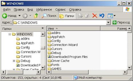 Рис. 19. Вікно програми Проводник Переміщення на один рівень вгору по дереву папок здійснюється клацанням по кнопці