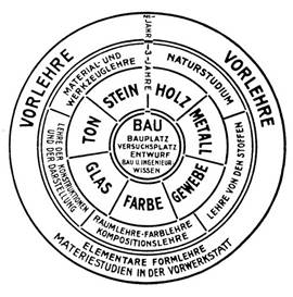 Bauhaus - имя художественной школы в Германии; высшая школа строительства и художественного конструирования. Школа приобрела известность за новый подход к дизайну в сочетании ремесла и изобразительного искусства и проведение обучающих программ. Школа предлагала решения, не свойственные своему времени — сочетание функциональности продукта с внешним видом, а одной из идей школы было создание моста между промышленным производством изделий и их художественной формой. Все началось в 1919 году, когда Вальтер Гропиус был назначен директором двух художественных школ в Веймаре – Школы прикладных искусств (которая не функционировала с 1915 года) и Высшей школы искусств. В неразберихе послевоенных лет Гропиус, с разрешения влиятельных лиц, объединил их в одну, создав таким образом Баухауз (Bauhaus). Слово «Баухауз» (Дом строительства) придумал сам Гропиус, оно символизировало построение своеобразного храма искусств, в котором есть место всем ремеслам и искусствам при ведущей роли архитектуры. Гропиус писал: «Нет границ между ремеслом, скульптурой или живописью, они и есть здание. Давайте вместе создадим это здание будущего, где все будет слито в единой форме. Архитектура, скульптура, и живопись». Принципиальную схему обучения изобразил сам Гропиус. Она представляла собой концентрические кольца, каждое из которых обозначало свой курс. Начиналось обучение с полугодового пропедевтического курса (наружное кольцо), придуманного в 1919 году художником и преподавателем школы Йоханнесом Иттеном, которому Гропиус позволил экспериментировать с учебным процессом. В ходе этого курса студенты изучали основные закономерности формы, цвета и знакомились с различными материалами в начальных мастерских. В наши дни пропедевтический курс расценивается как одна из самых важных инноваций Гропиуса в Баухаузе.