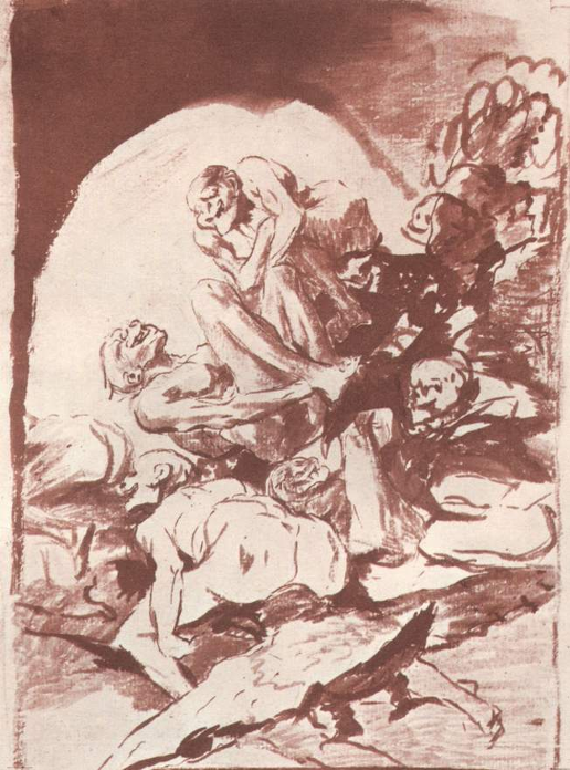 Гойя. Шабаш ведьм. 1797-1798. Б., перо, сепия, отмывка. 19х14. Мадрид, Прадо.