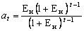 де Е — загальний корисний ефект від експлуатації або споживання продукції; Вс — загальні витрати на придбання (створення) продукції; Ве — загальні витрати на експлуатацію або використання продукції; аt — корекційний коефіцієнт, залежний від строку служби виробу. Корекційний коефіцієнт аt ураховує чинник часу і нормативний коефіцієнт ефективності — Ен. Для кожного року експлуатації виробу його визначають за формулою: