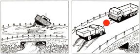 Завдання 3 РЕКОМЕНДАЦІЇ ВОДІЯМ Швидкість слід вибирати у відповідності з дорожними умовами та видимістю проїзної частини. В кінці спуску плавно пригальмуйте, впевніться, що дорога не готує вам неприємних сюрпризів на повороті.. Перед поворотом знизьте передачу та виберіть положення транспортного засобу на проїзній частині (не перетинаючи осьової лінії) так, щоб радіус повороту був максимальним - це зменшить дію відцентрової сили. Рульове колесо слід повертати чітко і плавно. Увійшовши в поворот, поступово (не різко) "відпускайте" рульове колесо та збільшуйте оберти двигуна - на виході з повороту ви ще можете достатньо розігнатися перед підйомом.