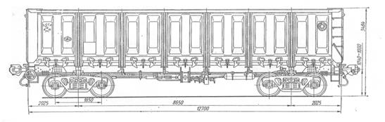 Наибольшее распространение на российских железных дорогах получили саморазгружающиеся четырехосные универсальные полувагоны с торцевыми дверями и разгрузочными люками в полу (рис. 1.7).