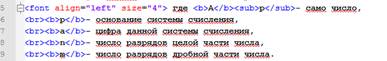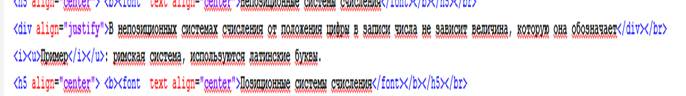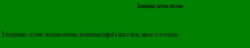 6. Слова Позиционные системы счисления – заголовок пятого уровня, выравнивание по центру. Предложение «В позиционных системах…» – выравнивание по ширине.