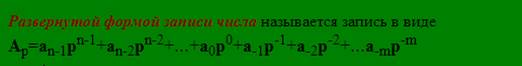 Слова Развернутой формой записи числа – цвет бордовый, полужирный курсив. Формула – выровнена по центру, моноширинный шрифт, размер 4. Полужирные символы, верхние и нижние индексы по образцу.