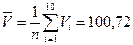 В результате серии из n=10 измерений получают ряд значений Vi в милливольтах: 100,68; 100,83; 100,79; 100,64; 100,63; 100,94; 100,60; 100,68; 100,76; 100,65. Среднеарифметическое вычисляют по формуле (2)